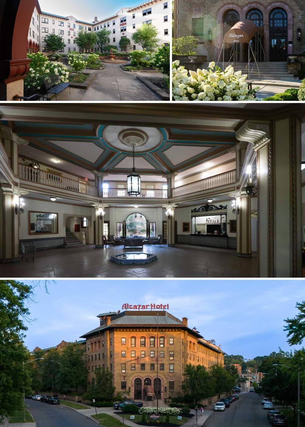 E. Derbyshire features the iconic Alcazar Hotel, a Spanish Revival gem with a breathtaking central courtyard that feels like a hidden oasis. Now being converted into beautiful apartments.
